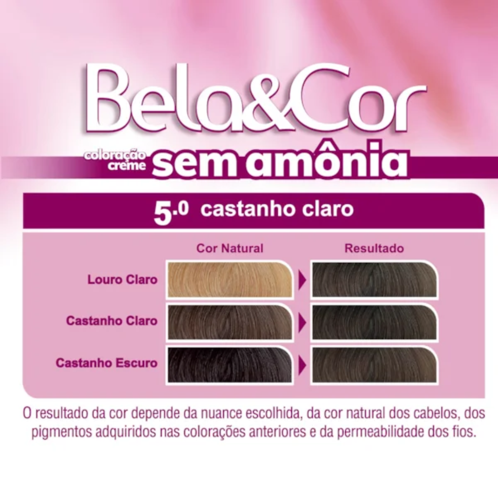 A Coloração Bela&Cor Sem Amônia é um tonalizante que resulta em cores vibrantes e luminosos pois contém pigmentos inovadores que penetram profundamente nos fios cobrindo 100% dos fios brancos e deixando com um acabamento perfeito.
